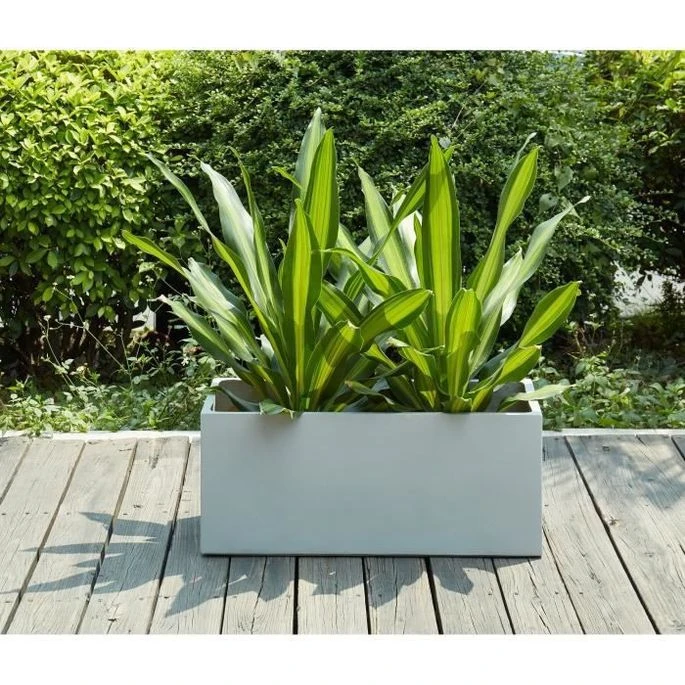 Bac A Fleurs En Fibre De Verre Style Ciment – 76 X 34 X 32 Cm – 80 L – Gris Clair